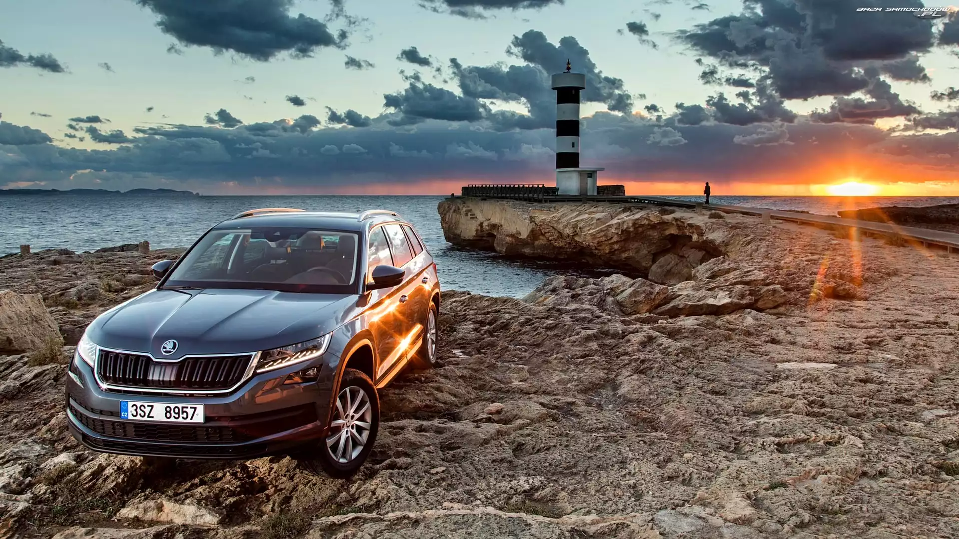 Samochód: Zachód słońca, Morska, Morze, Skoda Kodiaq, Latarnia