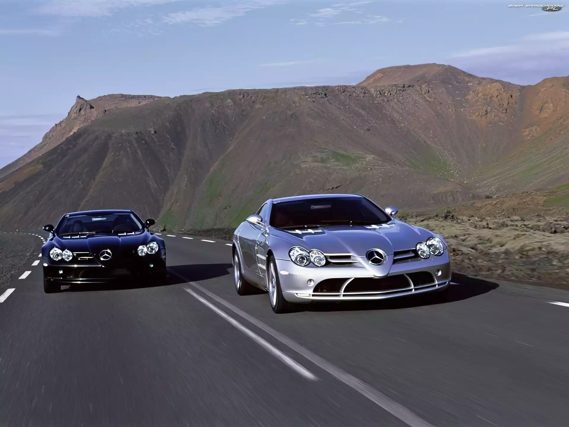 srebrny, Mercedes SLR, czarny- Zdjęcia samochodów